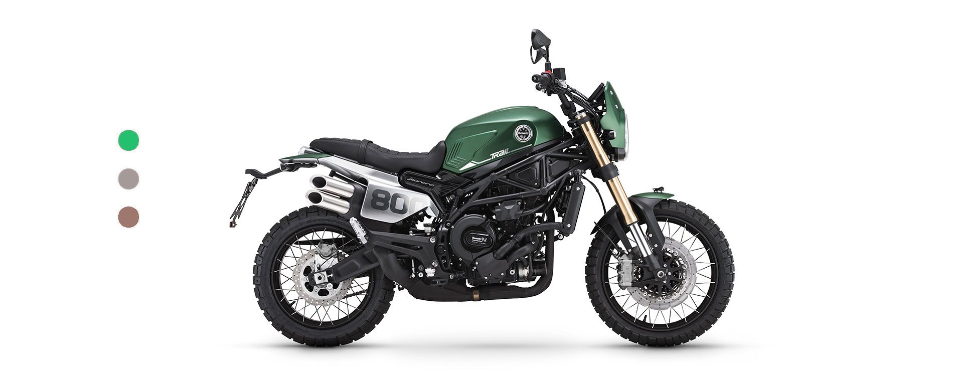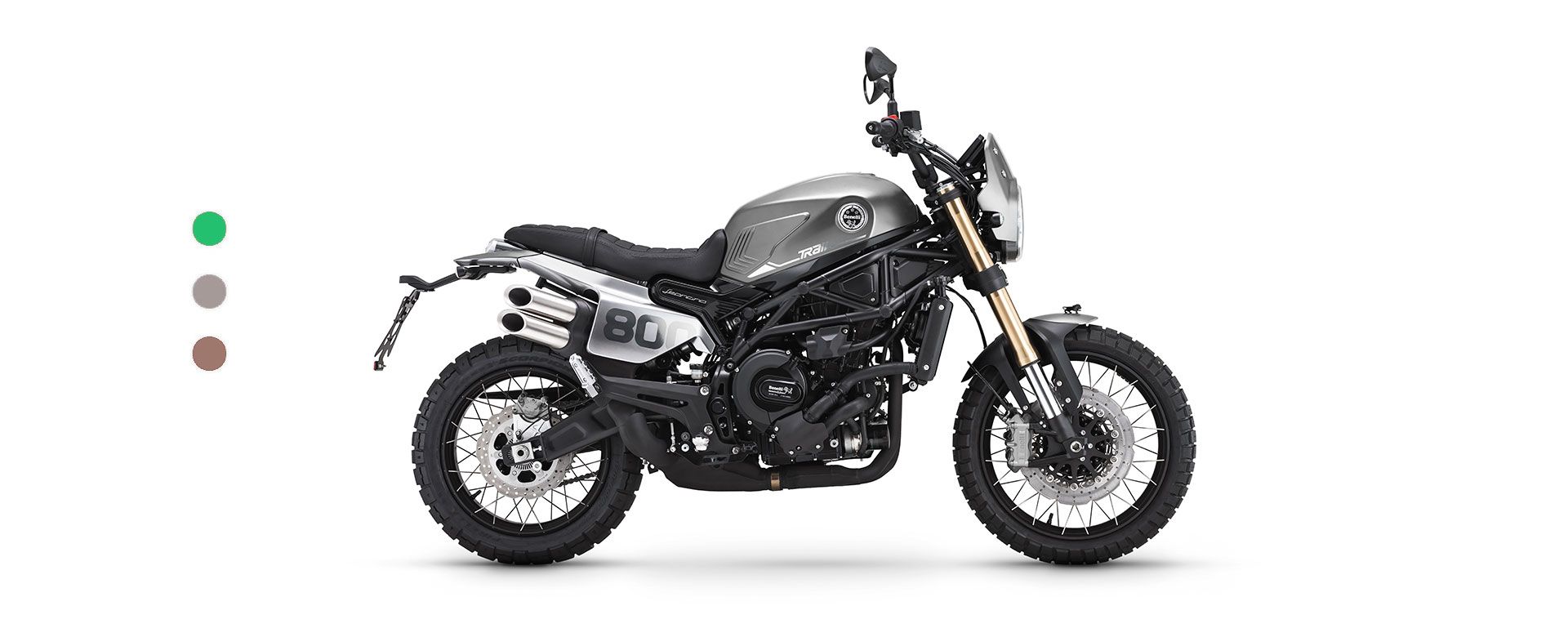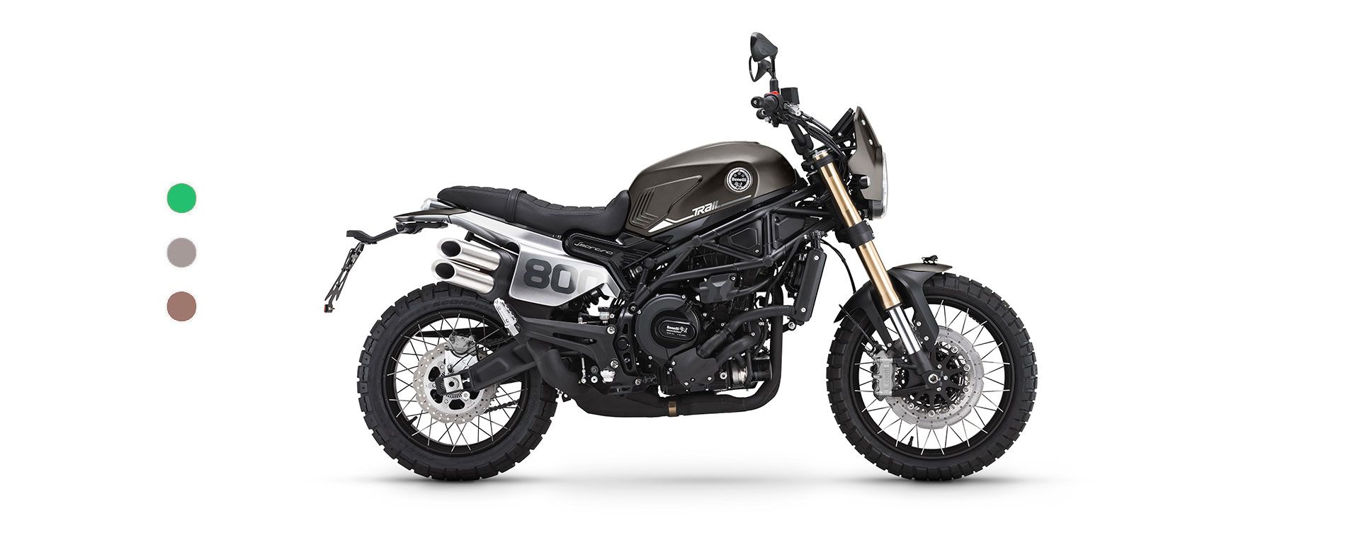 La parte ciclo ha sido revisada para poder hacer frente a rutas aún más off-road, donde superar la rugosidad del terreno. El bastidor es un multi tubular con placas de acero, compartido con la versión de carretera, capaz de garantizar el manejo y la agilidad en la carretera. Se ha actualizado el apartado de suspensión: la horquilla invertidad Marzocchi con diámetro de 50 mm de diámetro, ajustable en extensión, compresión y precarga, aumenta el recorrido de 130 milímetros de la carretera a 140 milímetros de la Trail. La misma actualización también a la parte trasera, donde encontramos un basculante oscilante con mono amortiguador ajustable central en la precarga del muelle y freno hidráulico en extensión, que También aumenta el recorrido (140 mm), elevando así el asiento de 800 milímetros de la carretera a 818 milímetros de la Trail .Para completar la imagen de las actualizaciones técnicas se incorporan unos neumáticos Pirelli Scorpion Rally STR de 120/70 19″ a la parte delantera y 170/60 17″ en la parte trasera. El sistema de frenado Brembo compartido con el Leoncino 800, garantía de máxima seguridad, con un doble disco frontal semi flotante de 320 mm de diámetro y una doble pinza monobloque radial de cuatro pistones, y el disco trasero de 260 mm de diámetro, con pinza de doble pistón.