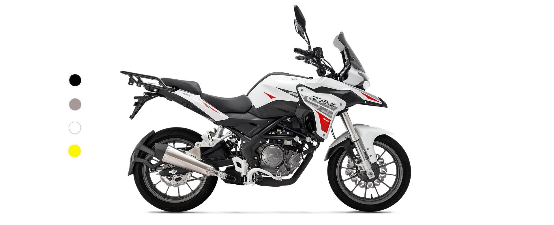 TRK 251 EURO 5 presenta un sistema de frenado que consiste en un solo disco flotante de 280 mm con pinza de 4 pistones en la parte delantera y 240 mm con pinza de un solo pistón en la parte posterior para una máxima seguridad en carretera. Las llantas de aleación de aluminio de 17 «montan un neumático 110/70 en la parte delantera y 150/60 en la parte trasera.